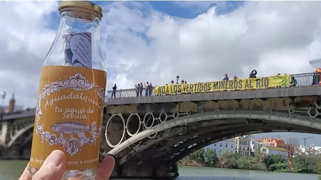 Reparten botellas de agua contaminada para protestar contra el vertido de la mina de Aznalcóllar